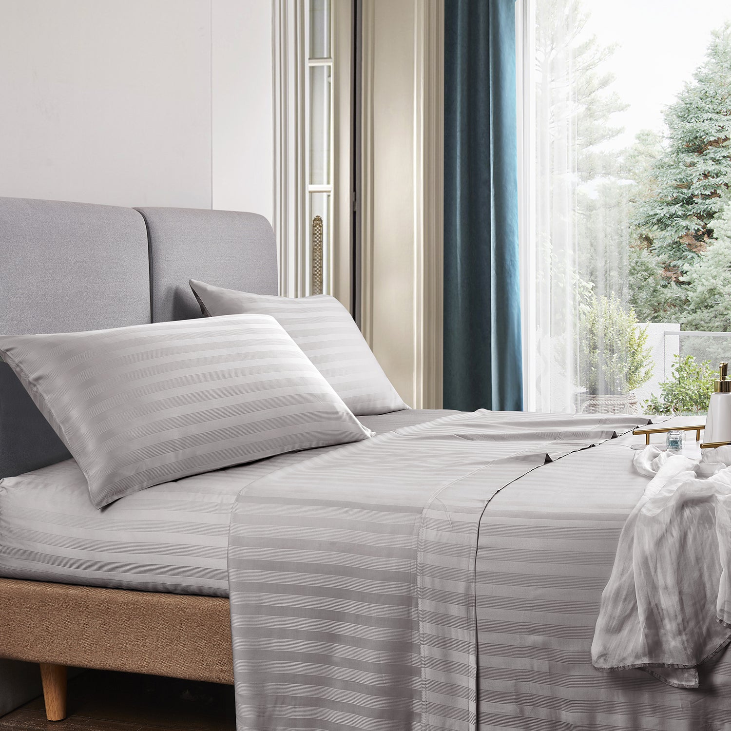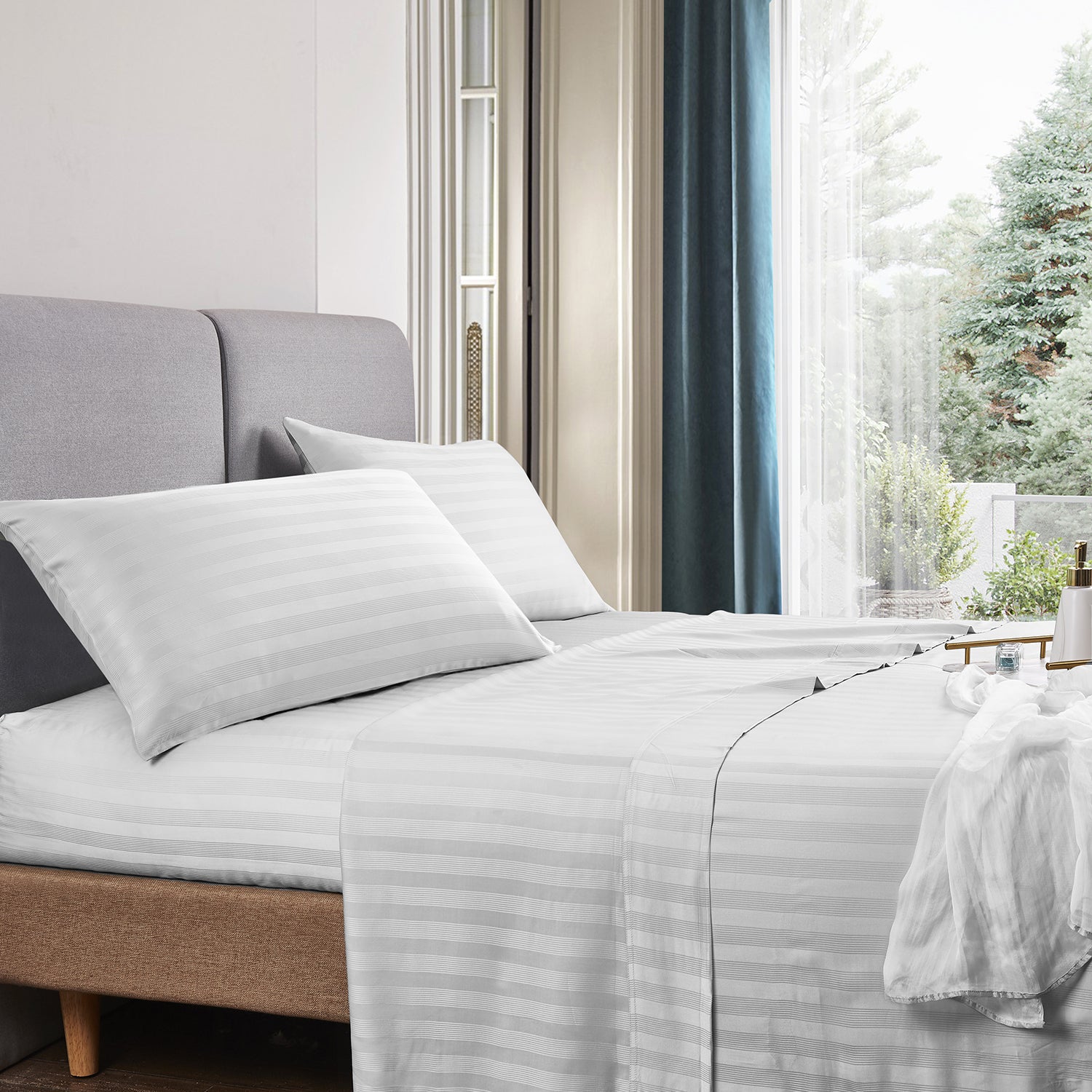 • 100% Cotton damask Stripe ( 2cm) Sheet Set.