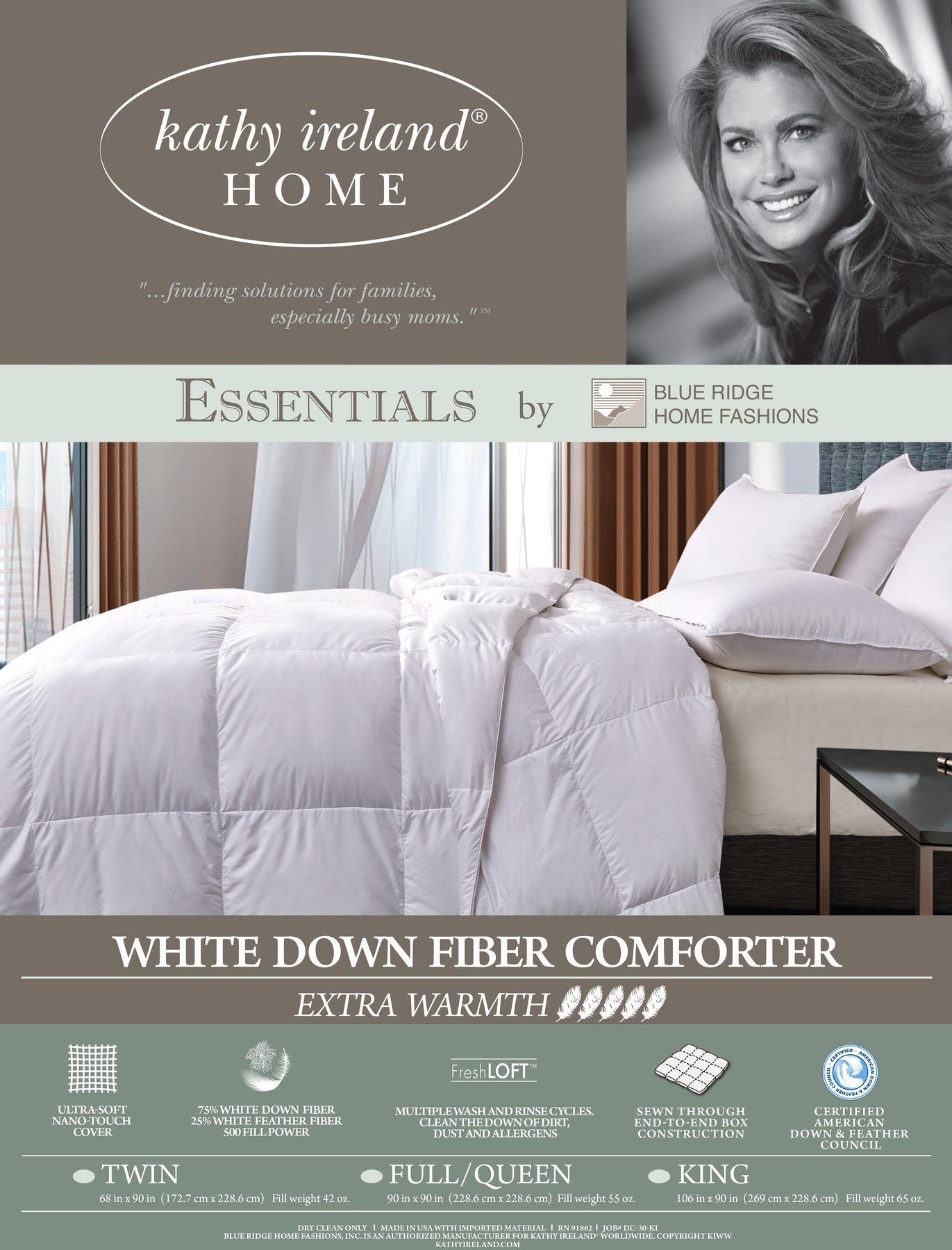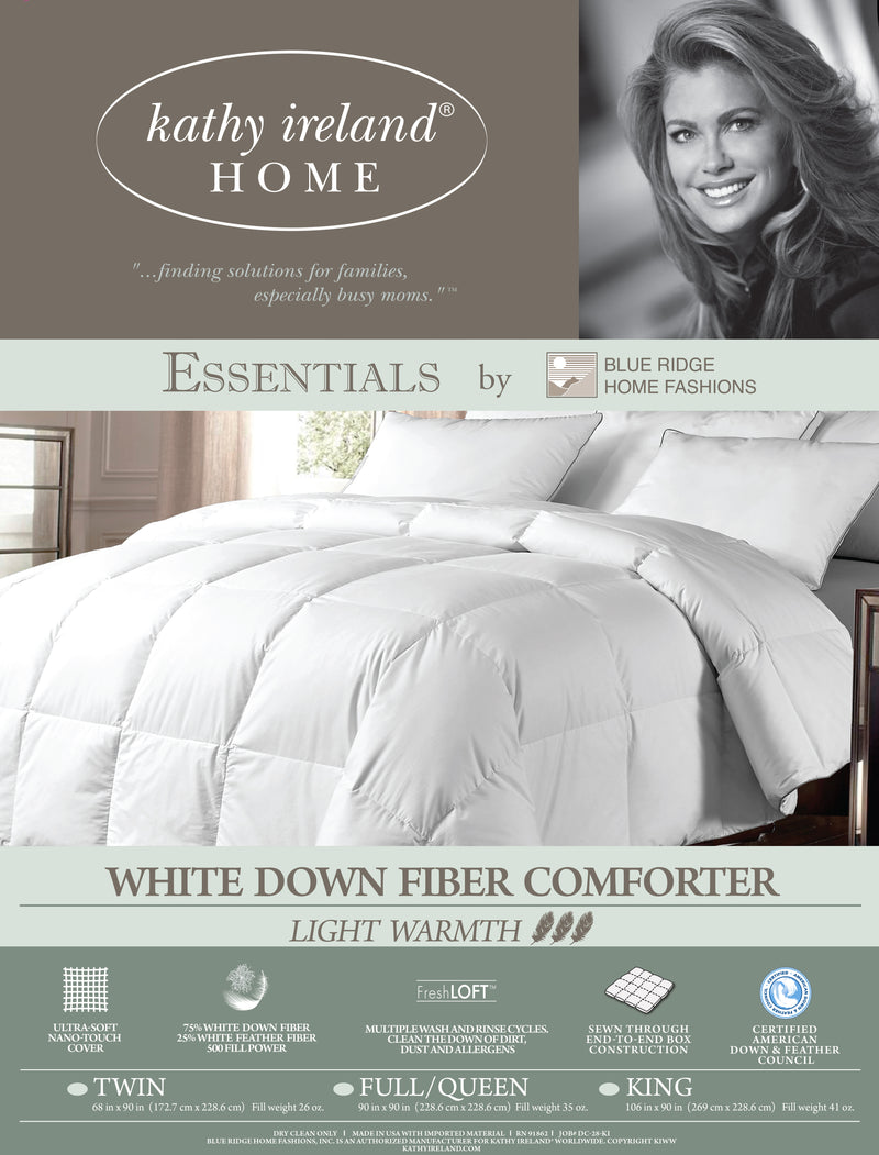 Kathy ireland ESSENTIALS Ultra Soft Nano Touch Light to Extra Warmth Goose Down Fiber Comforter